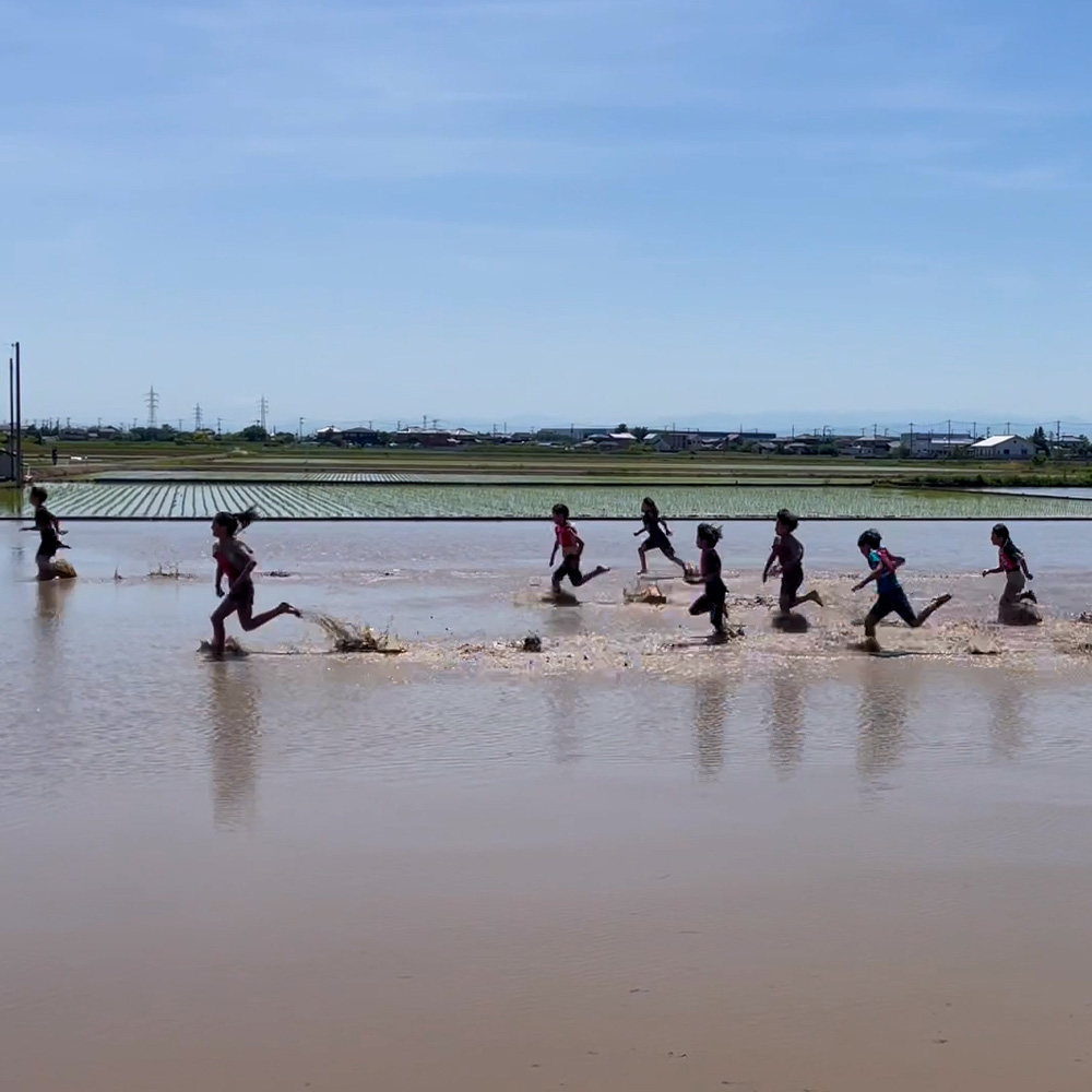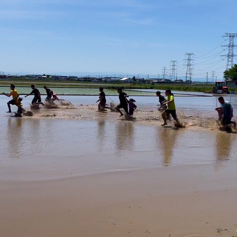田んぼでの徒競走